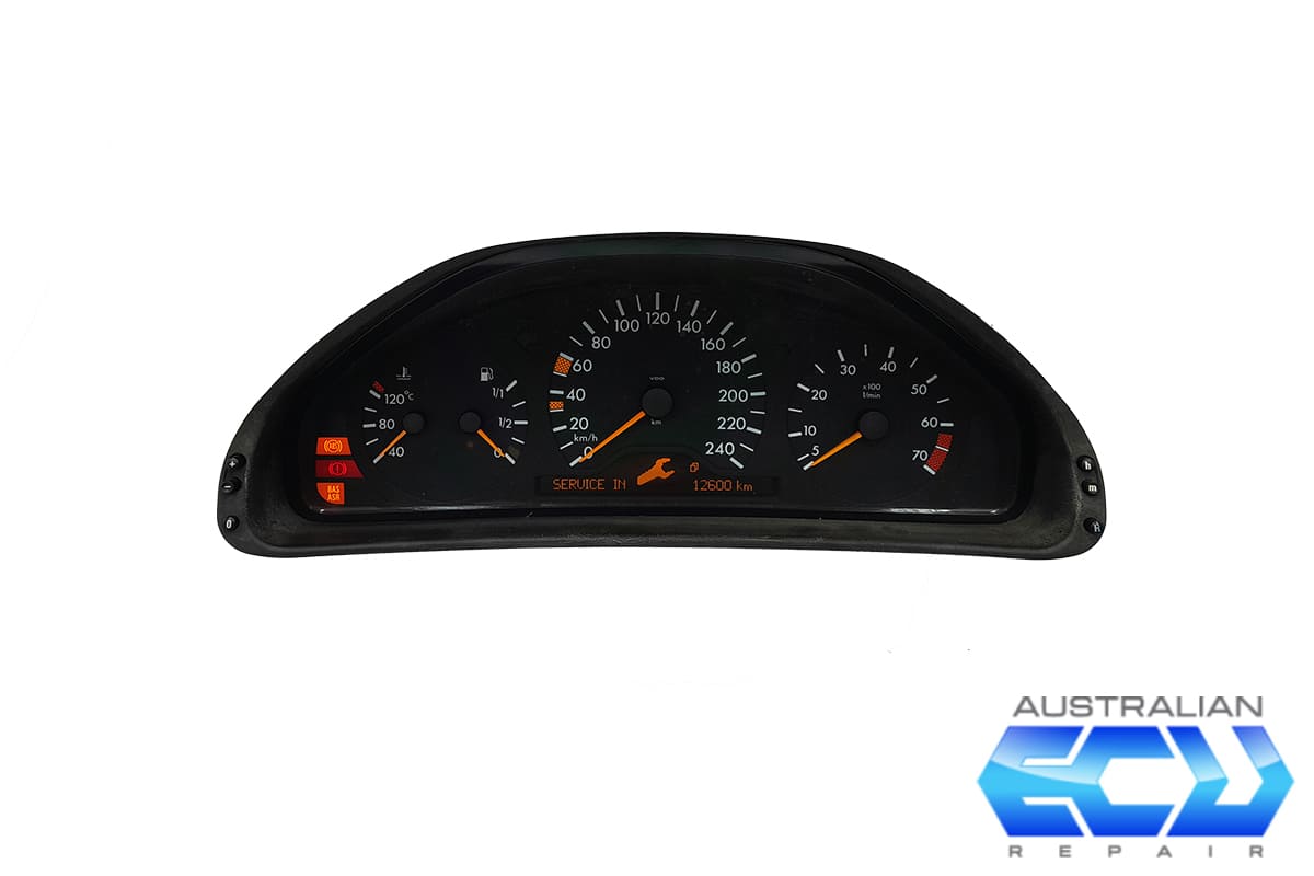 We can repair your faulty Mercedes-Benz W210 E Class instrument cluster. This instrument cluster commonly suffers a total failure with no lights or gauges functioning anymore and loss of CAN communication with other modules. It is also common for the LCD displays on this model to fail become disfigured eventually becoming permanently blank. We can also repair most other issues with this instrument cluster. All repairs comes with a 12 month warranty.